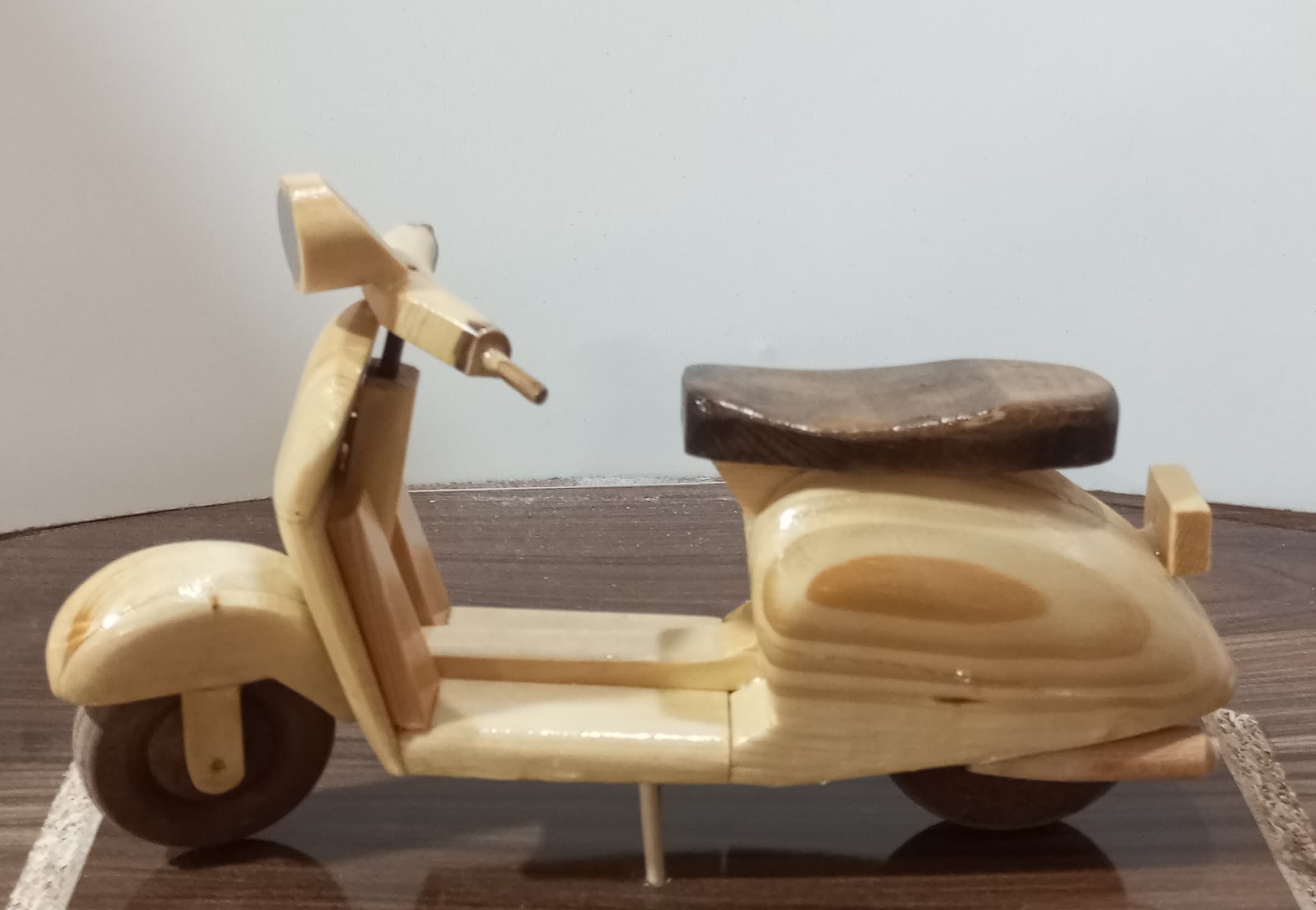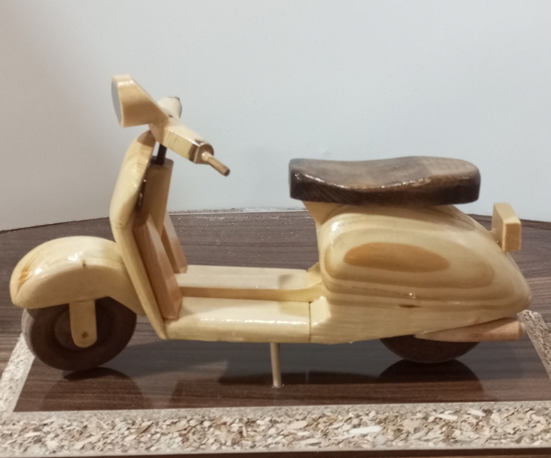 این مجسمه دکوری چوبی، یک اثر دستساز هنری با الهام از موتور وسپاست.هر قطعه با چوب طبیعی ساخته شده و بهخاطر دستساز بودن، ممکن است تفاوتهای جزئی در رنگ و بافت داشته باشد.مناسب برای دکور منزل، محل کار یا هدیهای خاص و متفاوت